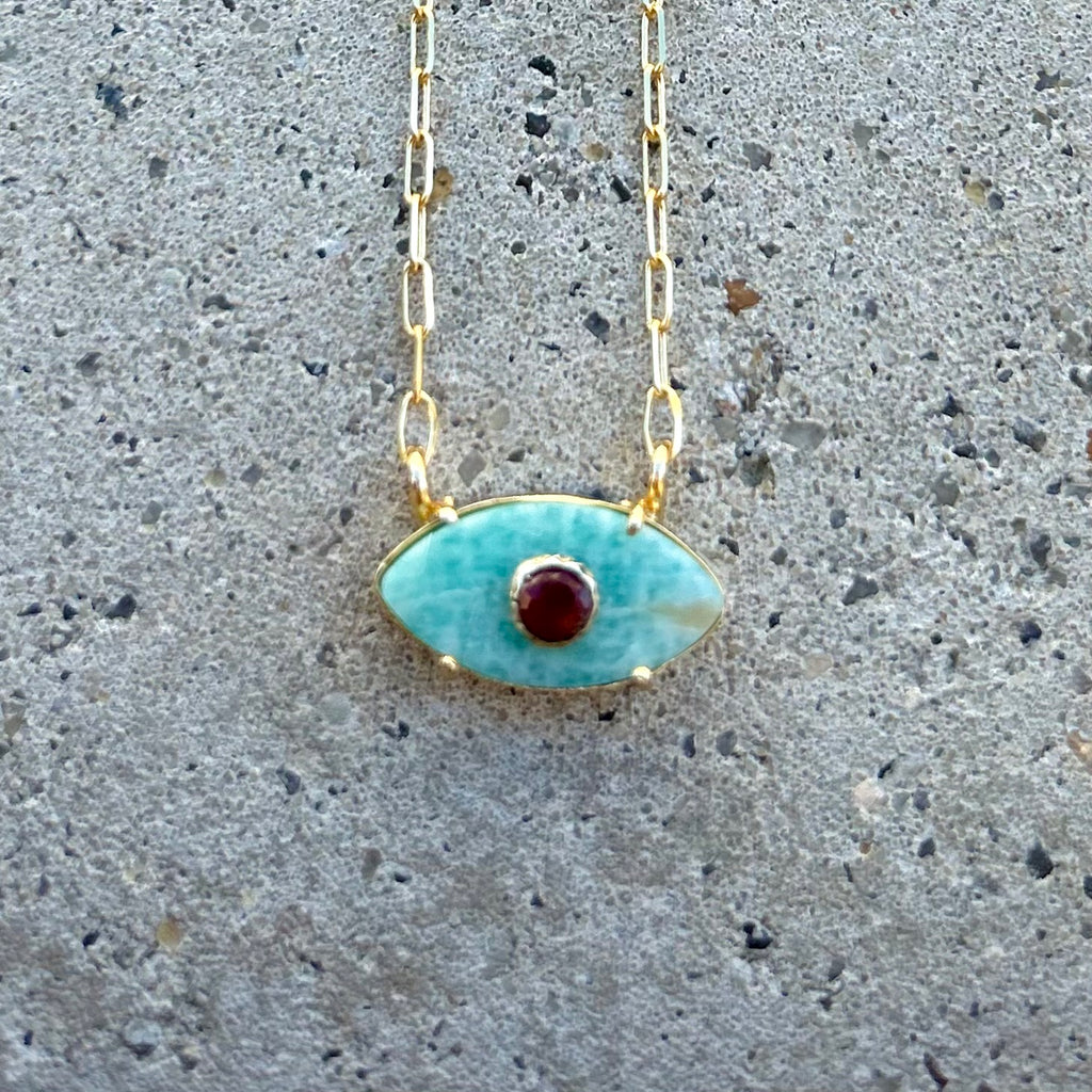 Amazonite Garnet Gem Eye Necklace