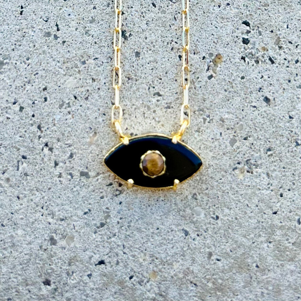 This eye necklace is made of brass 22k Gold plated 2 micron.