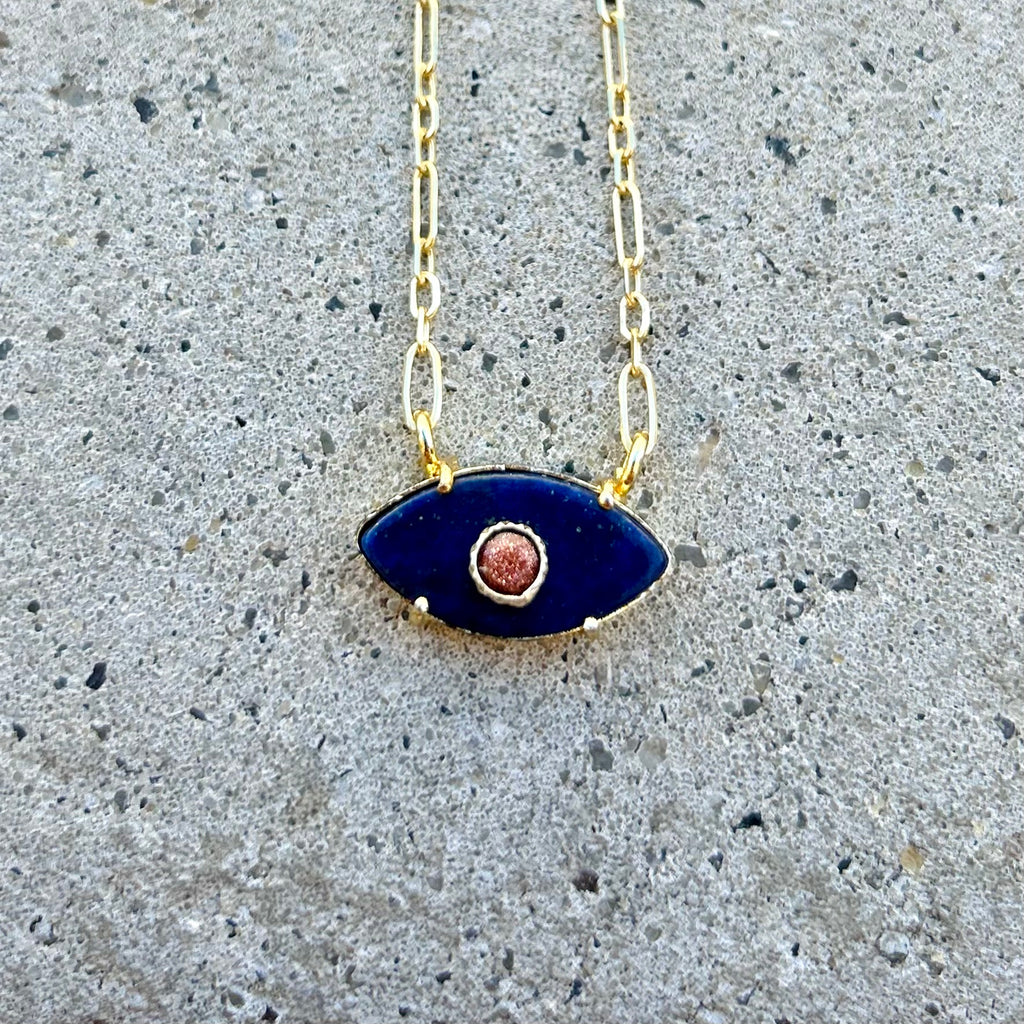 The eye is made of genuine Lapis and Sunstone the center.