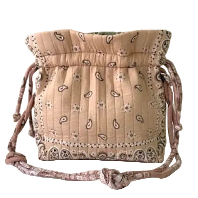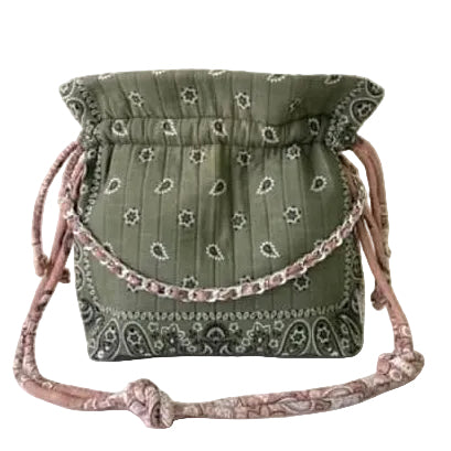 2 Tones Beige/Olive Green Bandana Trapeze Bag