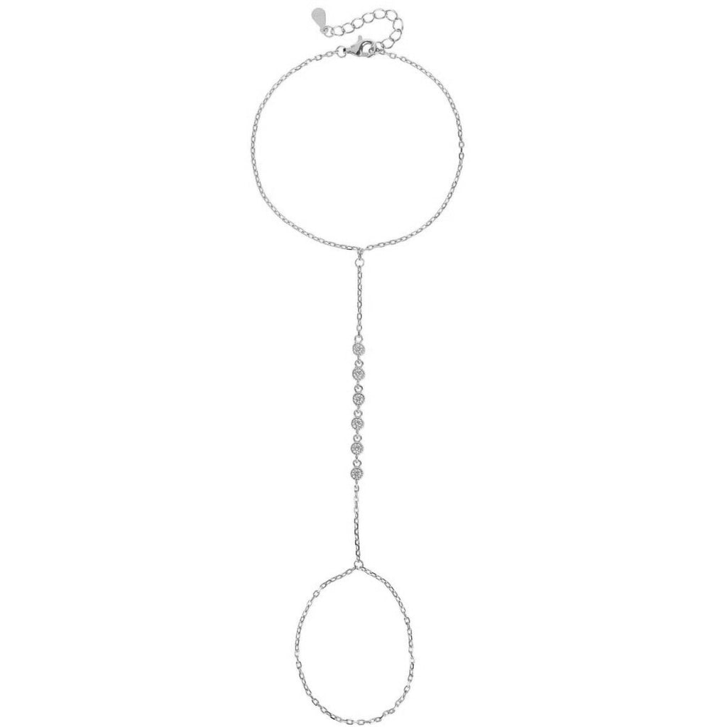 This handbracelet is made Sterling Silver and has 3 Small delicate scalloped Bezel Cz.