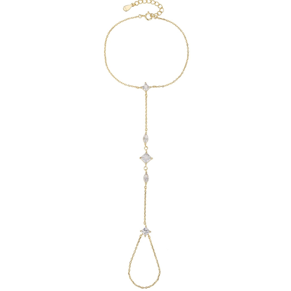 This handbracelet is made Sterling Silver and delicate cubic zirconium.