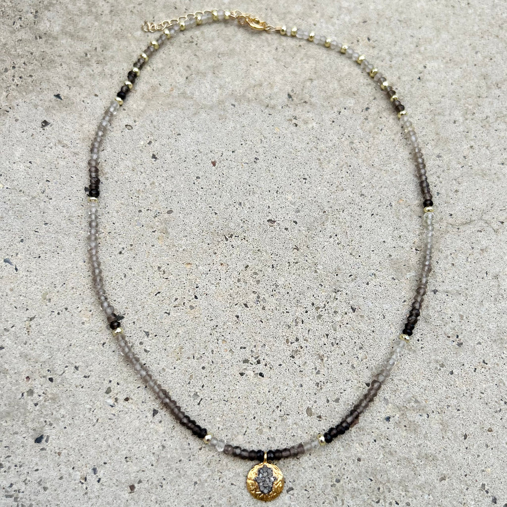 Graduated Smoky Quartz beads flow from soft grey to deep brown, grounding the spirit while dissolving negativity into clarity and calm.