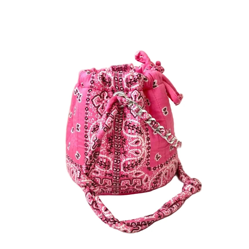 This very limited edition Bandana Bucket Bag reinterprets the classic bucket silhouette in a playful mini format.