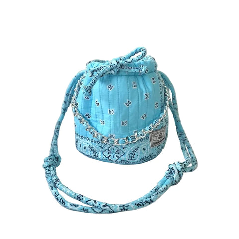 This very limited edition Bandana Bucket Bag reinterprets the classic bucket silhouette in a playful mini format.
