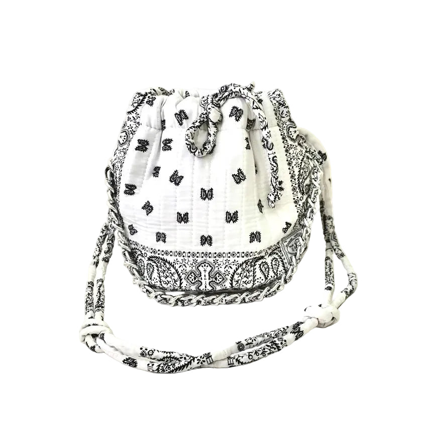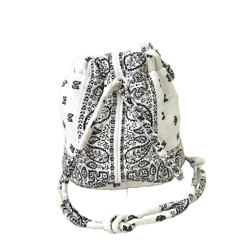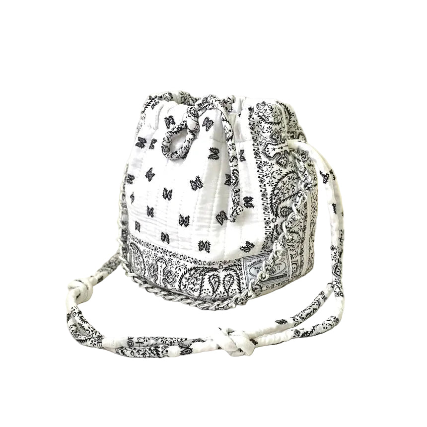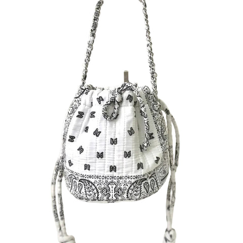 This very limited edition Bandana Bucket Bag reinterprets the classic bucket silhouette in a playful mini format.