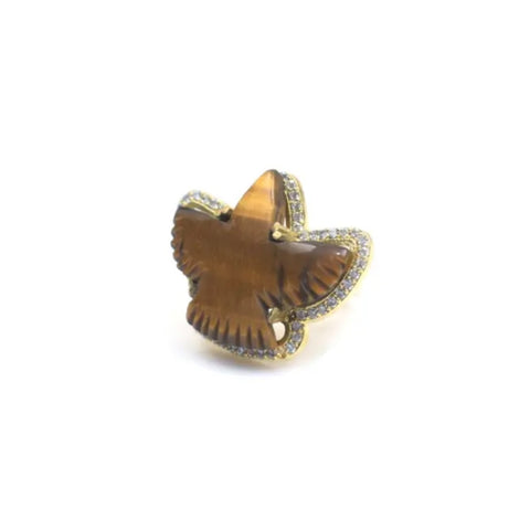 The Eagle is made of genuine carved Tiger Eye pave around with cubic zirconium.