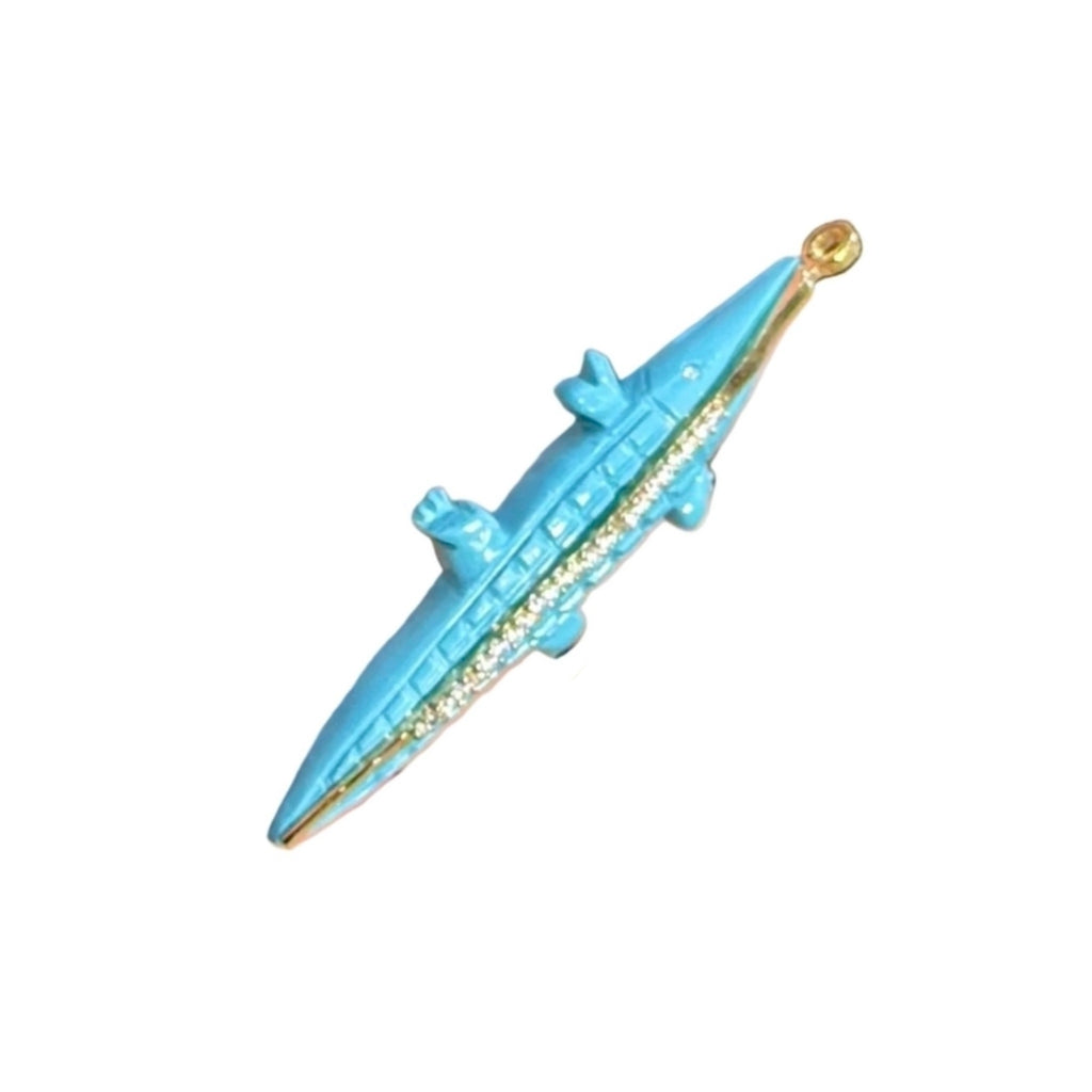 This necklace features a crocodile-shaped pendant carved from genuine Turquoise, accented with a central line of clear zircon stones, as well a small one on each side for the eye.