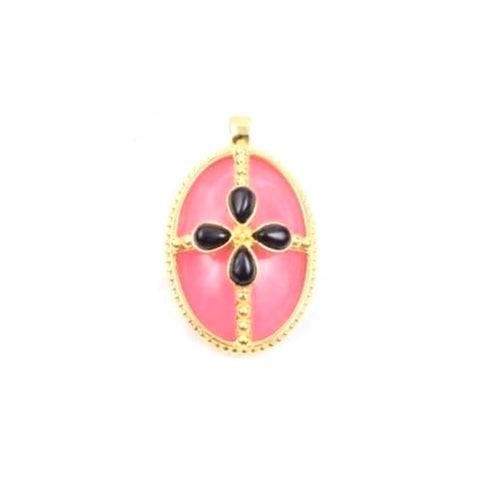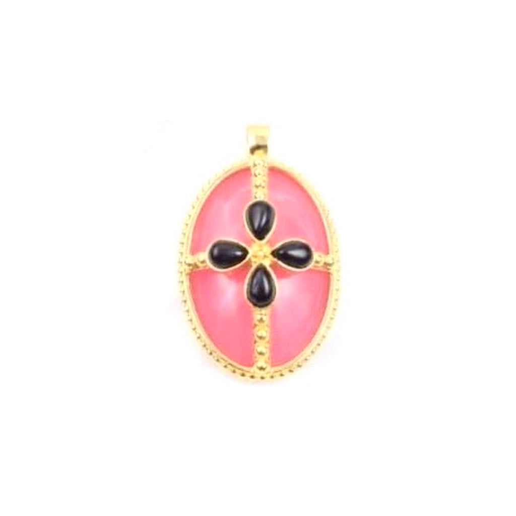 The King Henry pendant features an oval Pink Opal cabochon stone, accented with four teardrop-shaped Black Onyx elements at the center.