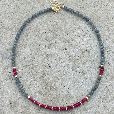It's made of genuine Rubies and Labradorite.